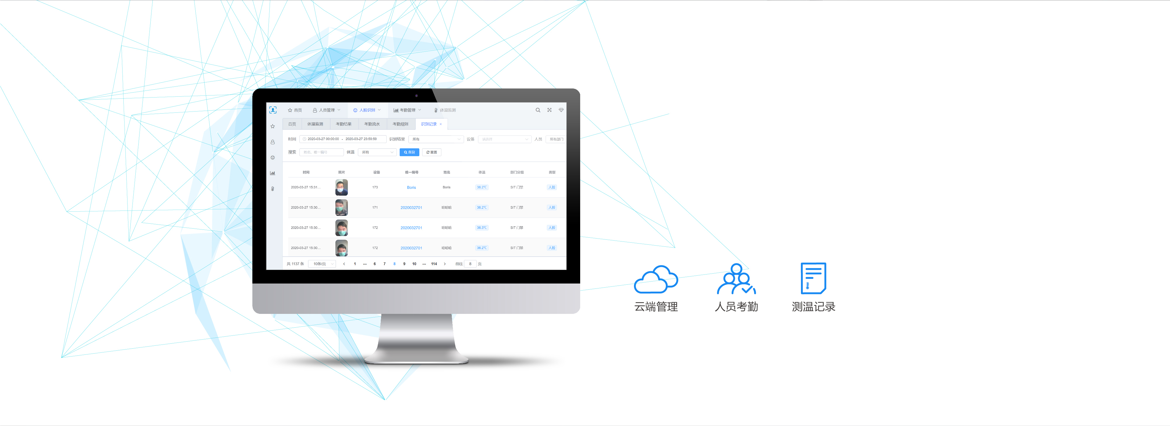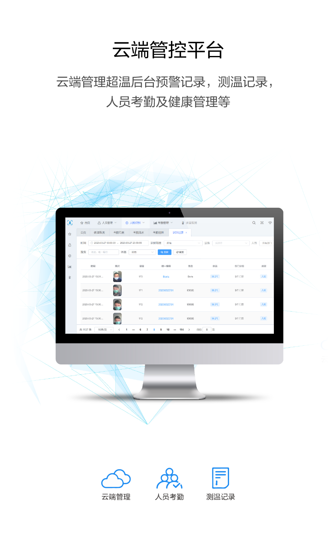 人脸识别 | 体温检测 | 云端管控 | 毫秒响应